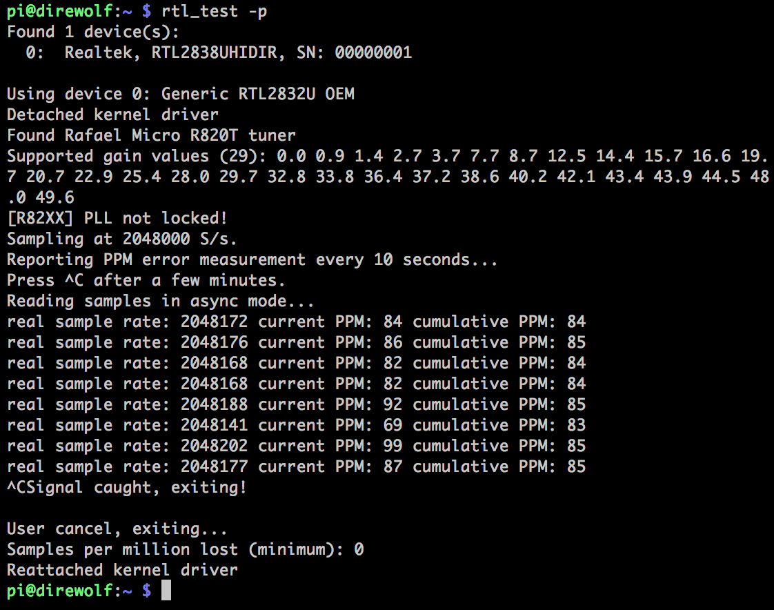 The rough result from rtl_test was in this case already very close. The ppm offset of this stick at the current temperature is 86ppm.